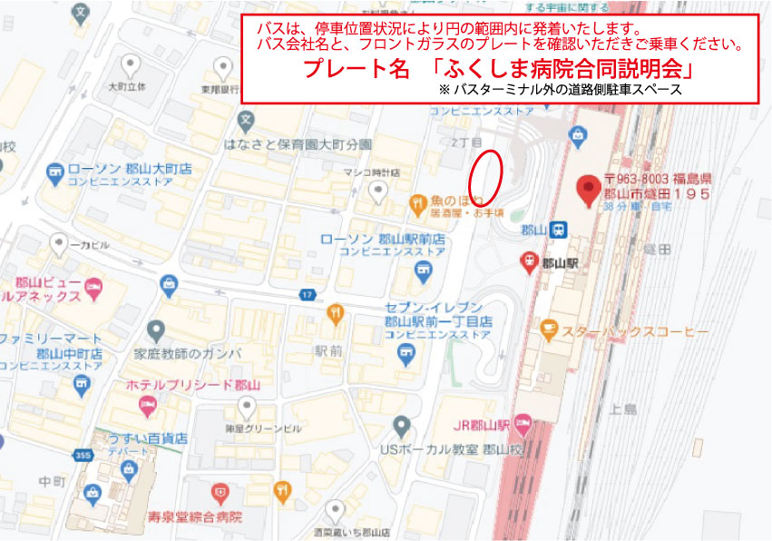 4. バスのフロント面には、「ふくしま病院合同説明会」の表示をしています。